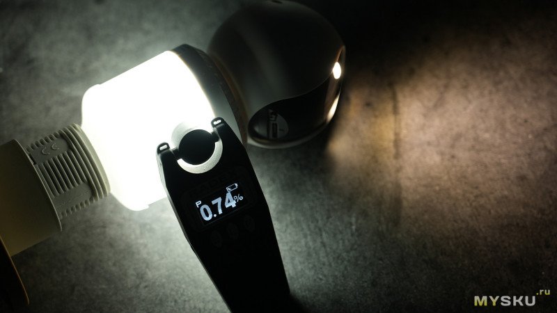 Чтобы измерить свет от двух светодиодов тёплого свечения, закрыл тканью колбу с основным светом.