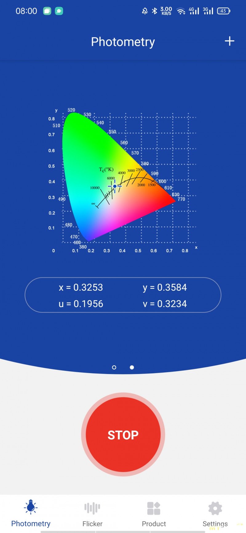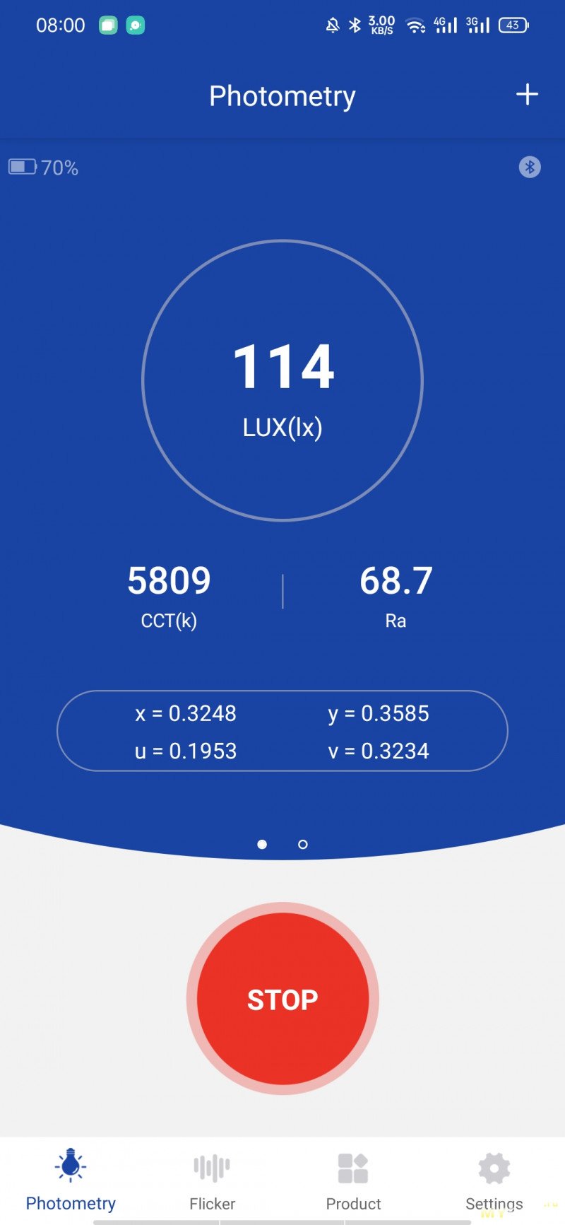 Измерим яркость. Расстояние 40см до датчика. Сначала основной свет.
