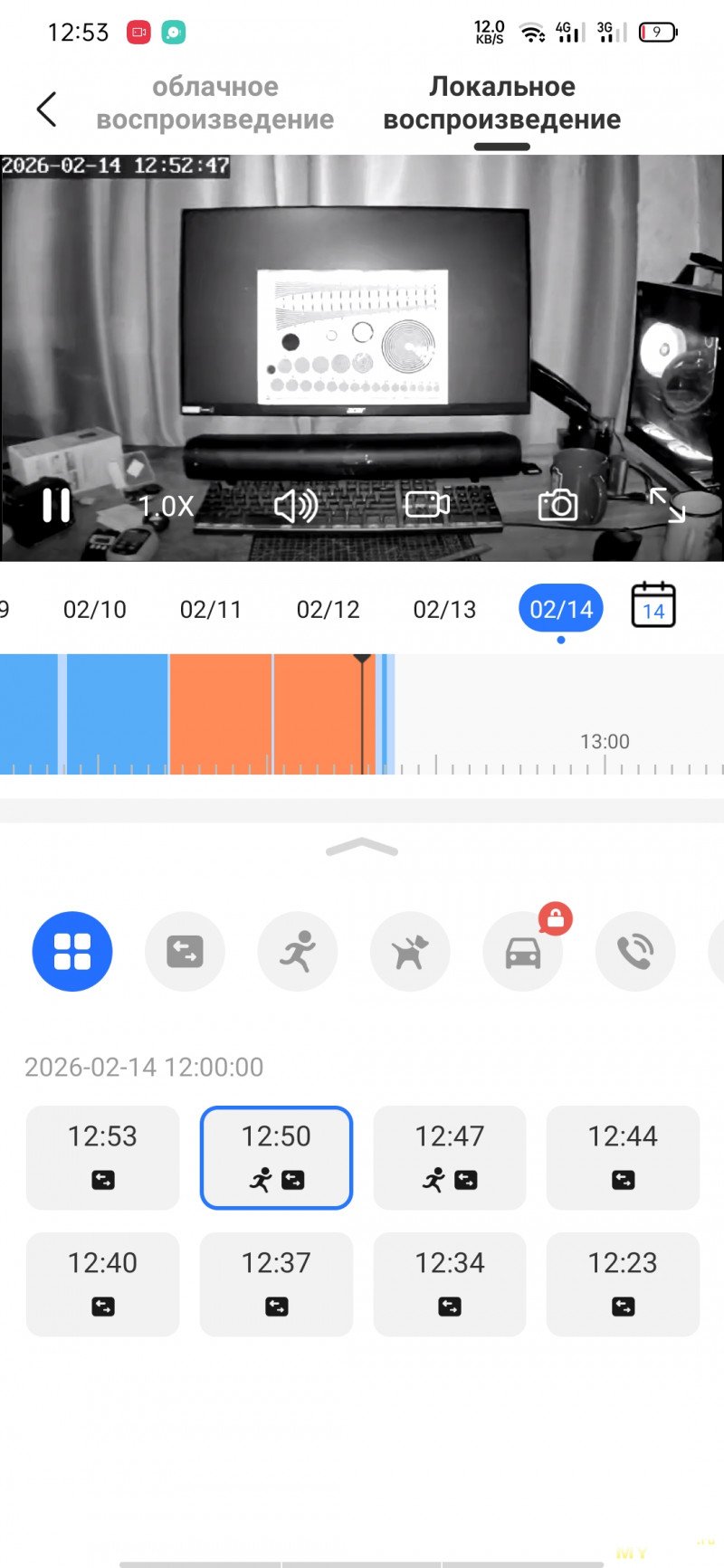 Есть сортировка видеозаписей по типу отработанного события. При просмотре видеозаписей на таймлайне временные периоды с активностями отмечаются отдельным цветом.