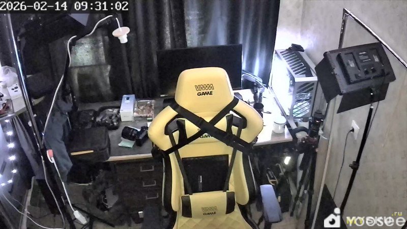 Камера прикручена к потолку вместо лампочки. Из внешних источников света только гирлянда и компьютер, в комнате визуально темно. На первом скрине включена накамерная подсветка на 100%, на втором скрине накамерная подсветка выключена, на третьем скрине включен ночной режим с ИК-подсветкой.