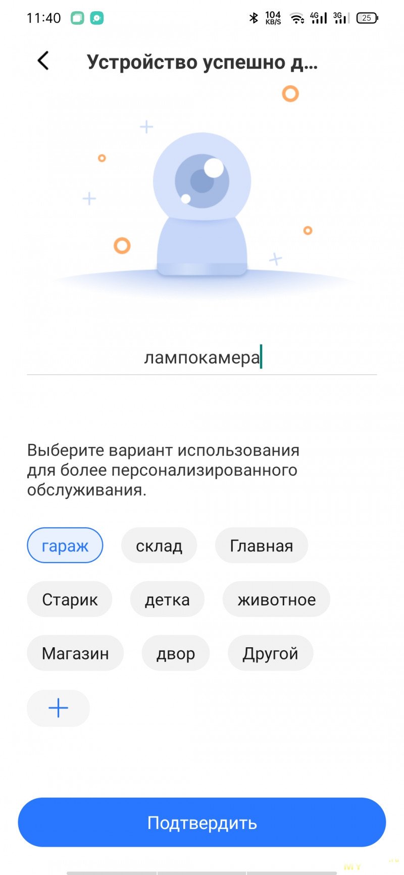 Для интеграции устройства в приложение, потребуется включить геолокацию, удостовериться что камера издаёт интервальный сигнал и отсканировать штрих код на корпусе камеры.