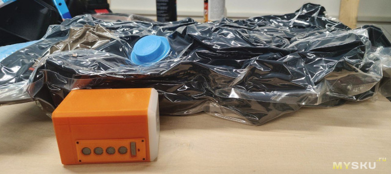 А вот для чего он отлично подходит — так это для работы в качестве ваккууматора, для откачки воздуха из герметичных пакетов, снабжённых клапаном. Такие пакеты продаются на любом маркетплейсе.