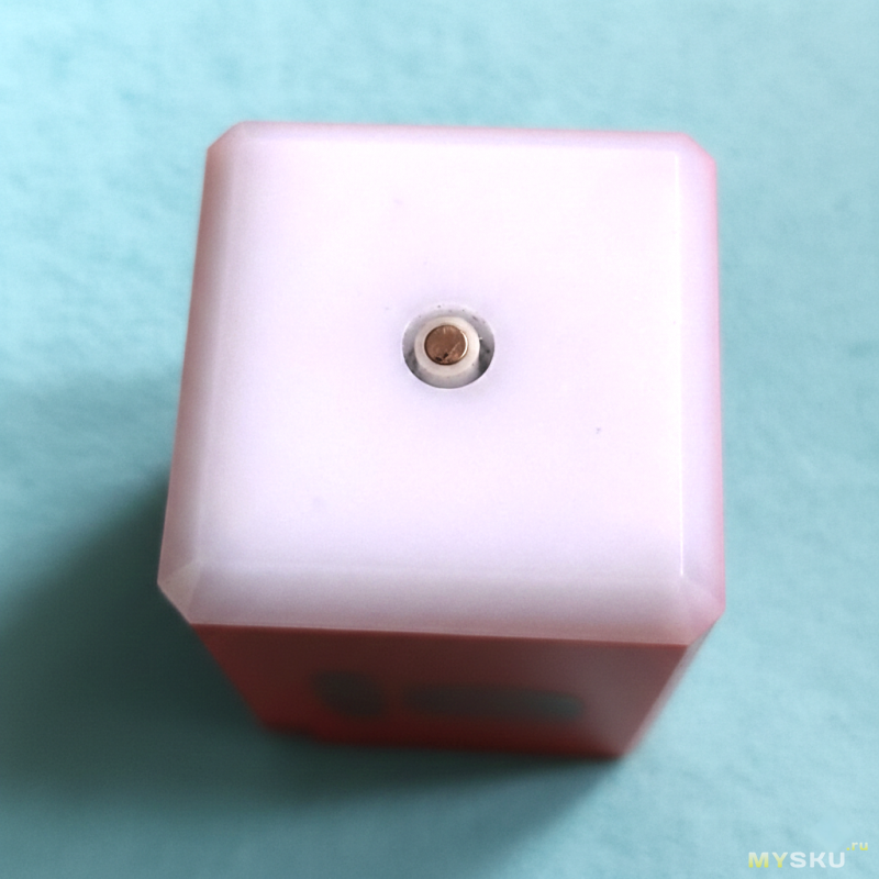 Донце сделано из молочно-белого пластика, так как это, в общем, плафон фонаря, а посередине него красуется утопленная заподлицо ось вентилятора, с магнитом для установки съемных лопастей.
