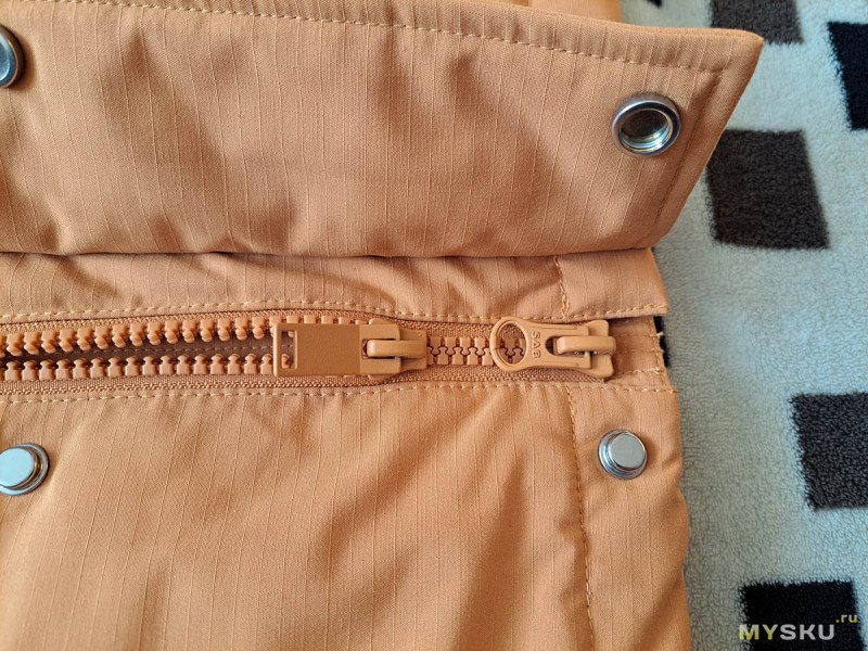У молнии два бегунка. Кроме фирменного брендирования есть название SAB.