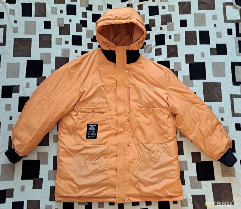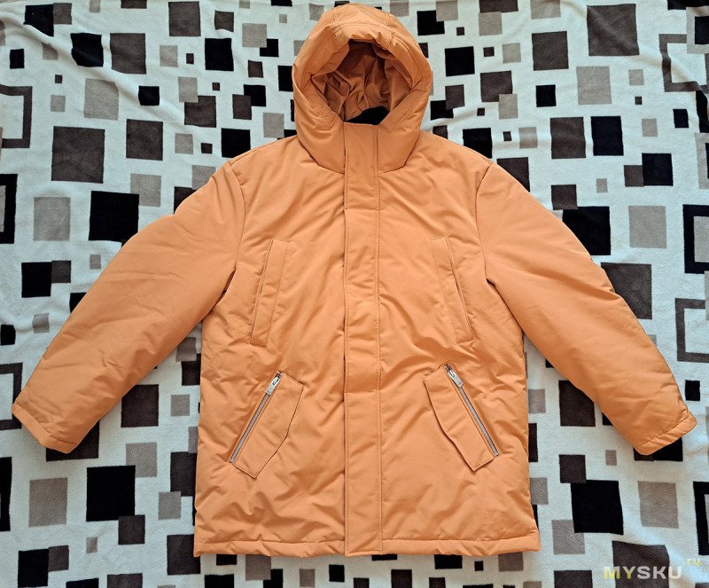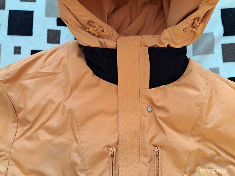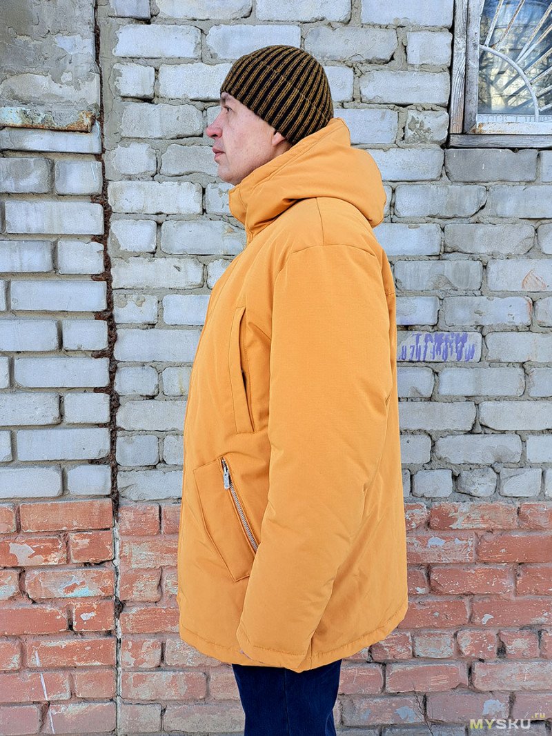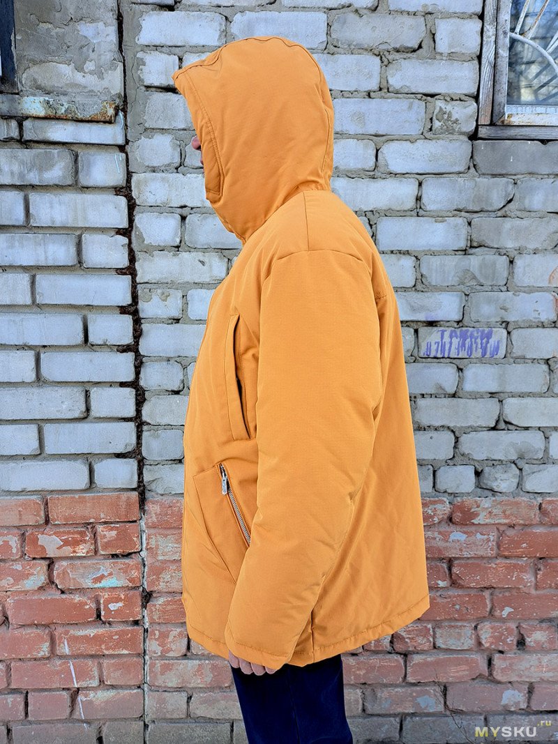 Вот так выглядит куртка. Я ожидал, что она будет более желтой. А тут цвет похожий на побледневший оранжевый (мне больше понравился).