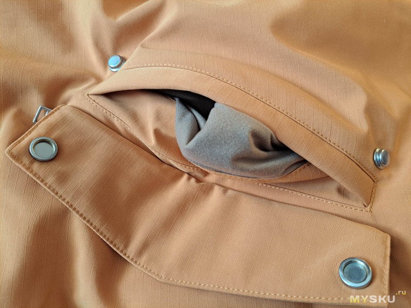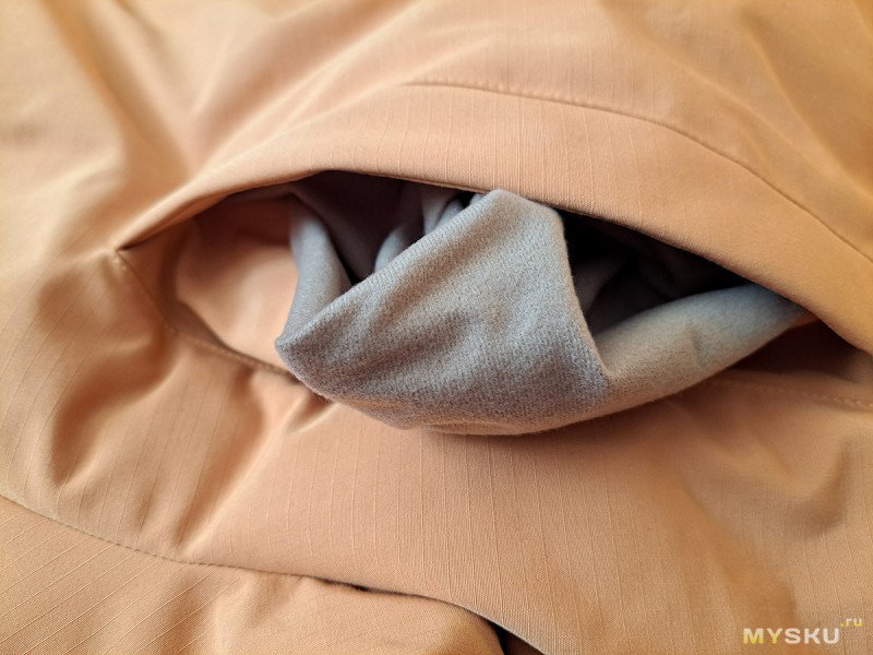 Все наружные карманы теплые, то есть, мешковина уходит под слой утеплителя. Такое, не каждый раз встречается, даже у именитых производителей.