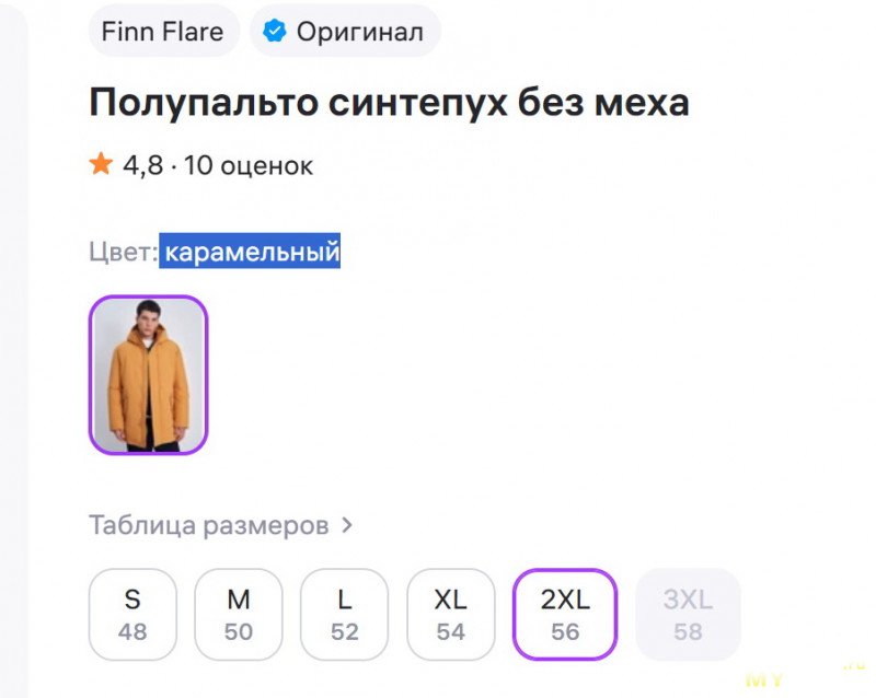 Сидит на мне несколько мешковато. И есть эффект «колокольчика» снизу (жалко, нет никаких утяжек по ширине). Возможно, 56-й размер, мне бы больше подошел. Но в этом случае, у меня есть сомнения насчет длины рукавов и общей длины. Размерной сетки нет, ни на WB, ни в фирменном магазе https://www.finn-flare.kz/catalog/palto-muzhskoe/659174/628656/
