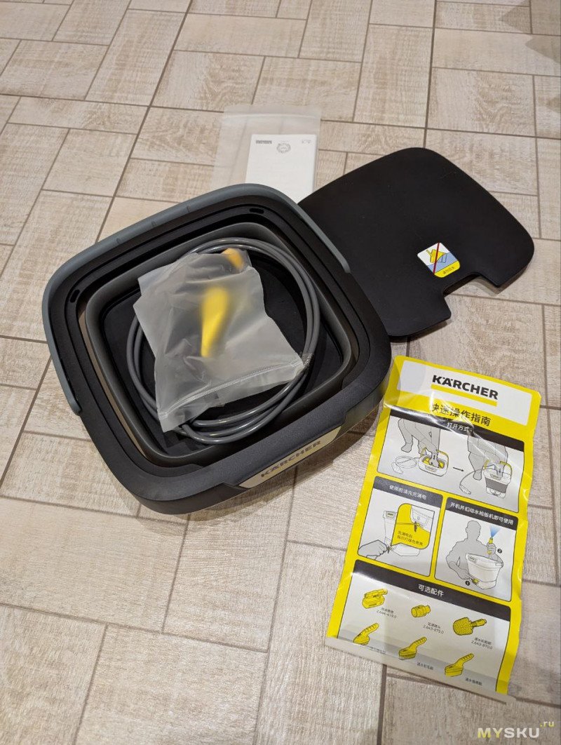 Давно искал что-то подобное, но китайские мойки в виде пистолета с аккумулятором не очень привлекали, т.к. не хотелось таскать кучу разного барахла в чемодане, плюс емкость с водой. Изучая очередной обзор аккумуляторной мойки на этом сайте, в комментариях увидел картинку складной мойки от Karcher со встроенным ведром, и понял, что нужно брать. Цена на сей аппарат не очень гуманная, плавает в районе 7 тыс. рублей, бывают небольшие скидки.