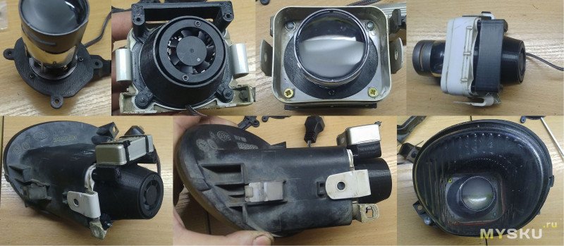 Новые противотуманки я даже не узнавал сколько стоят, а б/у стоят хорошо, а по состоянию мало от этих отличаются. Было решено попробовать ставить светодиоды. Опять же, у данных противотуманок очень удобный конструктив — они штатно с линзой, стекло не рифленое, внутренняя часть с отражателем и линзой довольно легко снимается — сам Бог велел поставить туда неродную светодиодную минилинзу. При этом я рассудил так что чем больше линза — тем лучше будет свет при прочих равных, а то что лампочка и на ближний и на дальний — в целом пофигу, потому что никто не запрещает мне НЕ использовать дальний. По цене же они все сопоставимы.