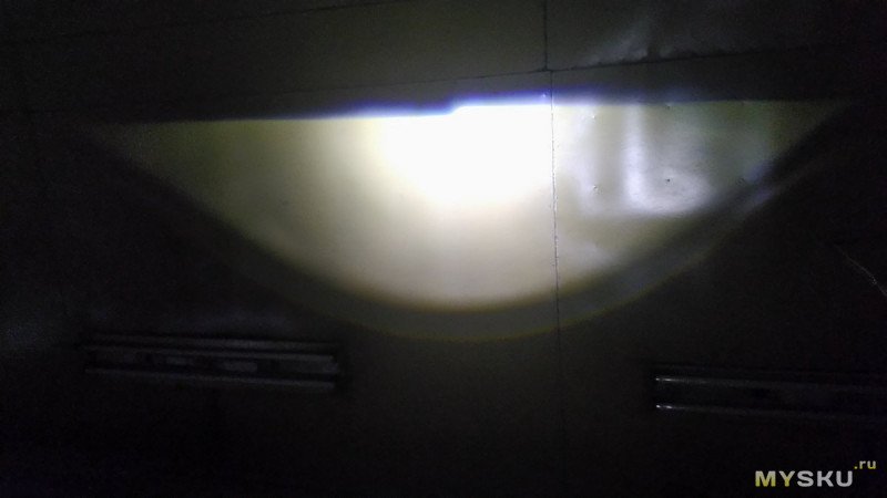 Светодиод дальнего рассчитан на работу со штатным отражателем фары, так что показать как светит не получится, ибо в фару под лампочки H4 я данные лампочки ставить не собираюсь. Ну а ближний светит вот так: