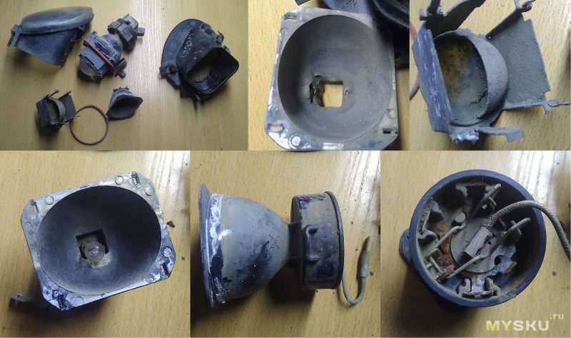 Теперь переходим таки к установке данных лампочек. Форд мондео-2. Противотуманки приуныли — и конкретно. Отражателей нет, линзы грязные и страшные, корпуса оплавлены, у одной тупо нет части корпуса куда собственно ставится крепеж лампочки. Восстанавливать тут увы нечего.