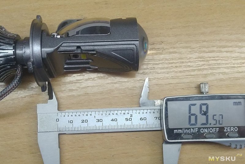 Диаметр лампочки как и вентилятора — 35мм, длина порядка 70мм от установочной плоскости, диаметр самой линзы 33мм