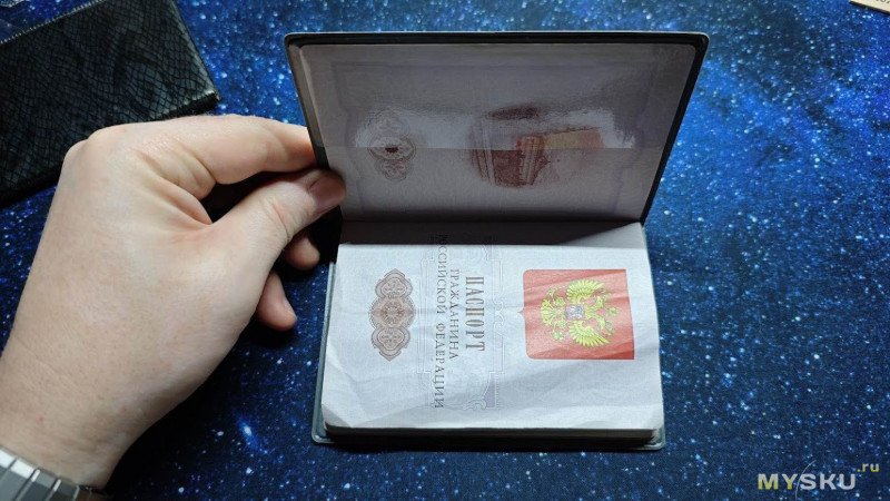 Паспорт в обложку встаёт практически идеально точно размер в размер, без загибов и излишних зазоров.