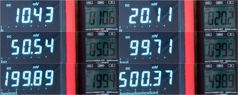 Почти везде показания немного занижены относительно «эталона», в допуск конечно вписывается, но откалибровать могли бы и получше.