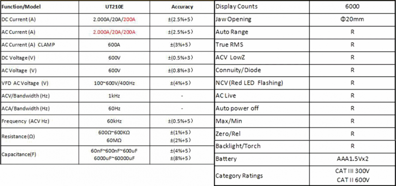 Производитель позиционирует эти клещи как улучшенную альтернативу популярной модели UT210E от UNI-T, даже название модели совпадает, видимо чтобы ни у кого не возникло сомнений относительно «источника вдохновения». Соответственно, и по своим возможностям эти клещи близки, но есть и довольно существенные отличия, например, у Ziboo максимальный измеряемый ток 200 ампер, а не 100 как у Unit. Также здесь повыше разрешение, 6000 отсчётов против 2000 (но у Юнита вроде правкой констант в EEPROM тоже можно сделать 6000). Ну и даже по внешнему виду и компоновке понятно, что списывали не один-в-один: