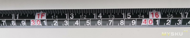 Из названных плюшек у неё есть всё, кроме «окошка». И это не потому, что мне стало жалко денег на более дорогую модель, просто покрутив в магазине рулетки с окошком, я намеренно выбрал себе вариант без него. И вот, почему – оказывается, в этом окошке нет каких-то космических технологий, оно всего лишь отображает обратную сторону ленты, на которую тоже нанесена маркировка, только сдвинутая относительно обычной так, чтобы в окошке были нужные показания. Это означает, что на нижней стороне такой рулетки маркировка есть, но вручную пользоваться ей нельзя, ведь вы намеряете непонятно что. А это, в свою очередь, может привести к неверным измерениям в сложных ситуациях или спешке. Также, чтобы минимизировать люфт, лента в таких рулетках проходит через плотно закрепленные ролики, соответственно, идет более туго. Ну, и погрешность измерений «окошками» оказалась весьма высокой, у штук пяти рулеток, попробованных в магазине разброс составил от -5 до +5 миллиметров, что делает всю эту идею даже хуже, чем простая маркировка длины корпуса.