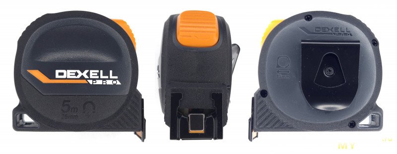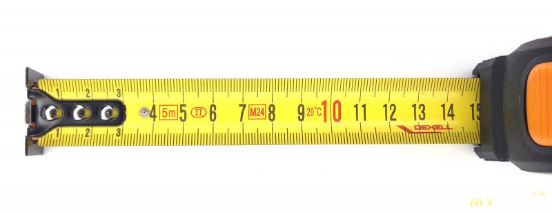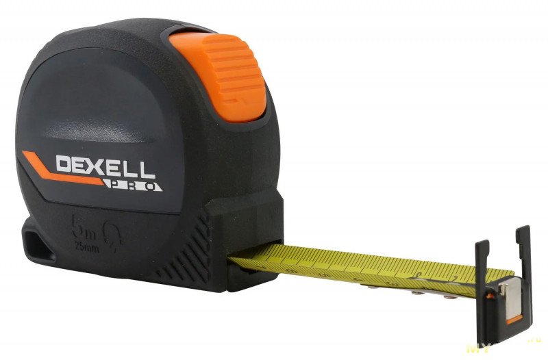 Составив список таких «плюшек», я вдруг понял, что у моей старенькой Vira нет ни одной из них, даже простой маркировки длины корпуса! Поэтому проходя в очередной раз мимо стенда с рулетками в Лемана Про, я решил попробовать что-то новенькое. И этим новеньким стала DEXEL Pro длиной 5 метров за 370 рублей: