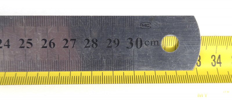 Оценим точность рулетки на короткой дистанции. Измерение от упора, линейка 30 сантиметров: