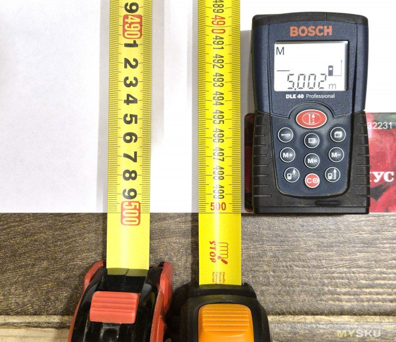 Но это короткие расстояния, такие обычно рулеткой и не меряют, а что же у нас на длинных? Сравнивать будем с моей старенькой Vira и лазерным дальномером. Итак, Bosch DLE 40, Vira и измерение от упора: