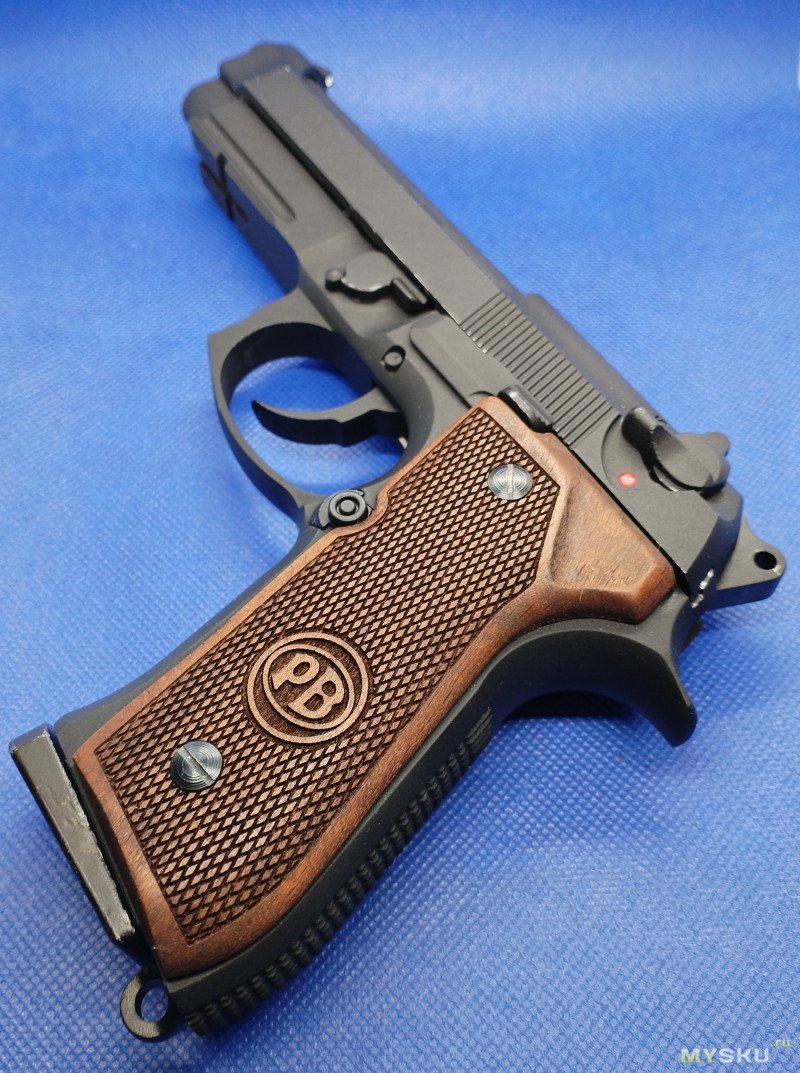 А если еще установить еще накладки на рукоятку от оригинального огнестрела, то в руках это ощущается как серьезное такое оружие.