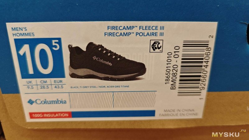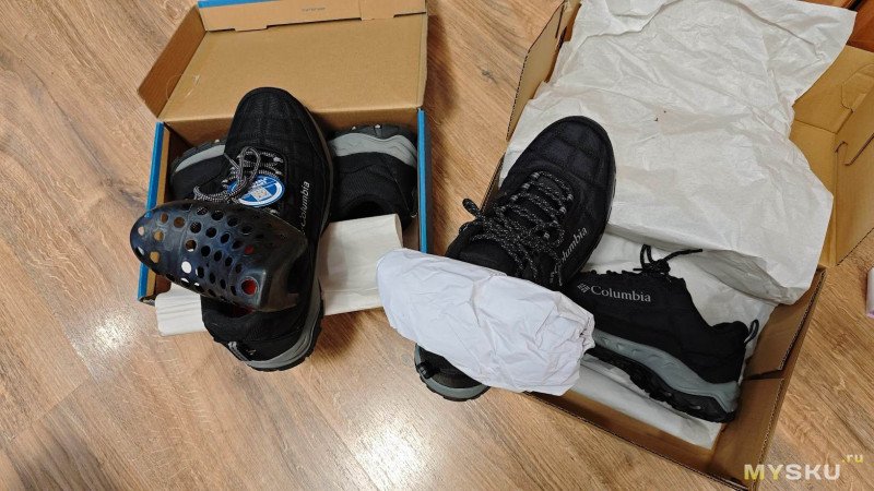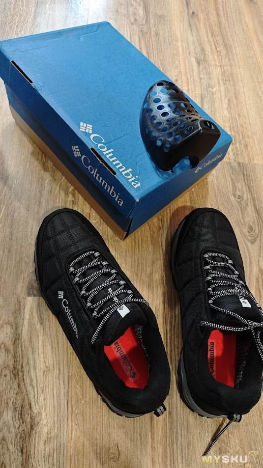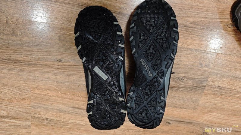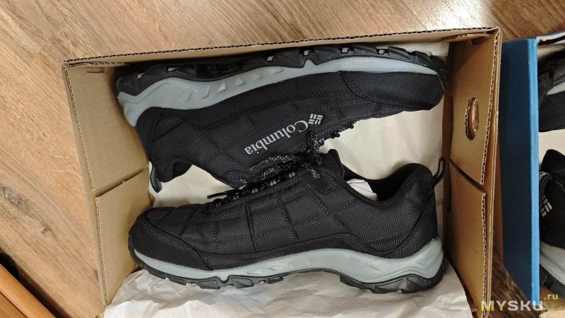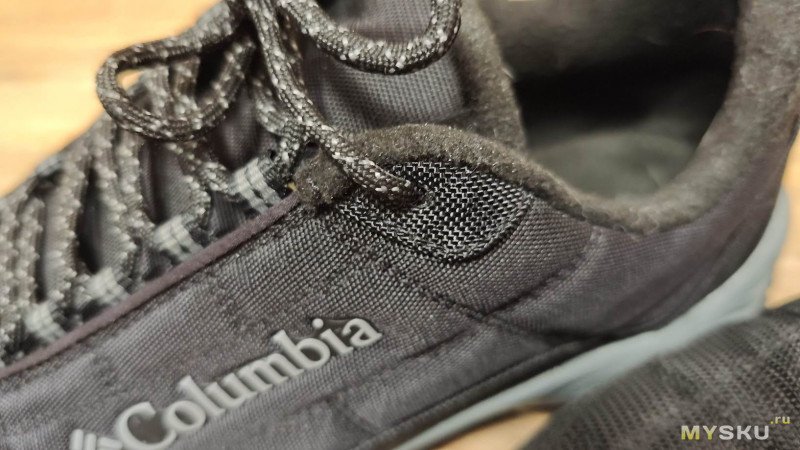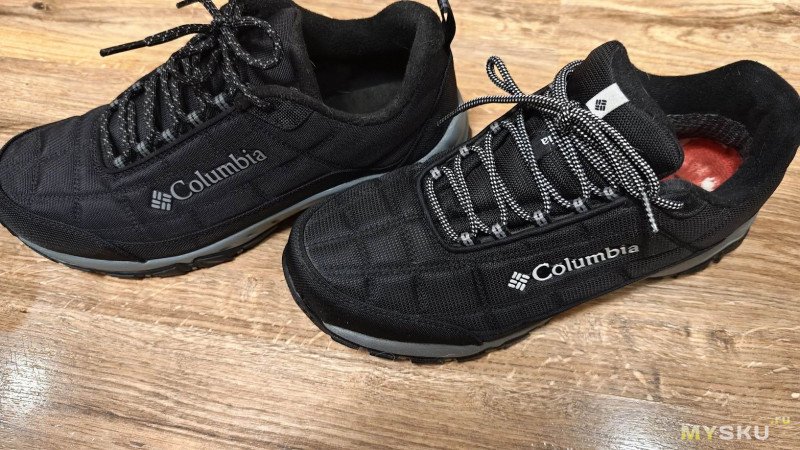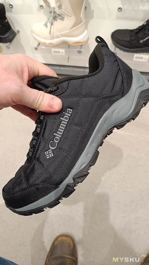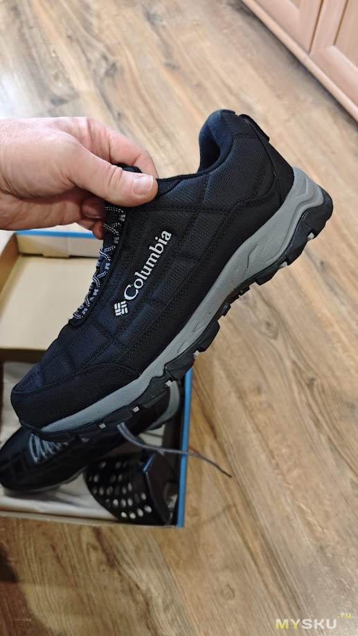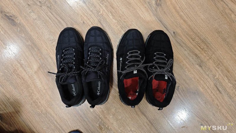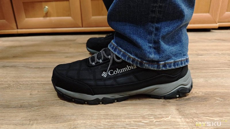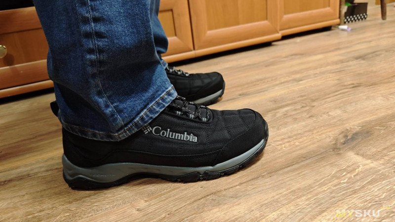 Первые впечталения от ношения — кромка упирается в щиколотку, доставляя дискомфорт, первое время даже болезненный. Большой палец левой ноги упирается в носок. Поносил пару недель и то ли разносил, но обувь стала по ноге и дискомфорт исчез. Вместе с тем проявились другие недостатки — верх промокает. Причем промокает не только от луж, но и от ходьбы по глубокому снегу. Самое неприятное, что промокают насквозь, носки при длительной прогулке с собакой потом можно хоть выжимать. Такое меня не устраивало. Прошло время и жене потребовались тёплые брюки на зиму. Пока она ходила по Спортмастеру, я зашёл в обувной отдел и увидел, что Columbia Firecamp Fleece III можно взять с 50% скидкой. Решил купить.