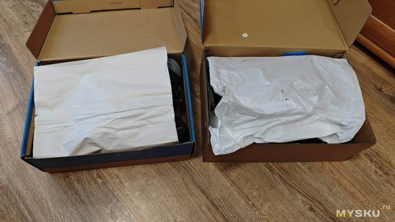 Внутри озоновская коробка окрашенная, сапортмастеровская нет. Упаковочная бумага практически одинаковая.