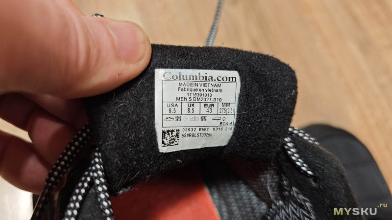 3. На заднике ботинок из Озона есть логотип Columbia, на Спортмастеровской паре его нет. Плюс на оригинальной обуви хлястик торчит вверх. Это правильно и удобно.
