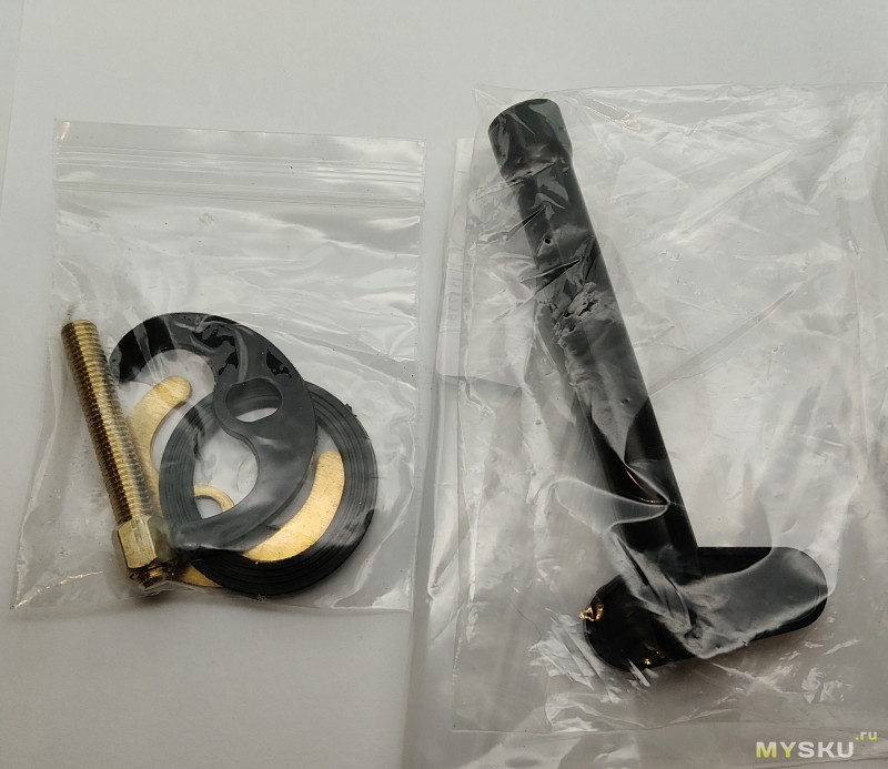 В пришедшей посылке (серый пакет пузыри, в нем два пакета) обнаружились нужные детали и ключ (пластик):