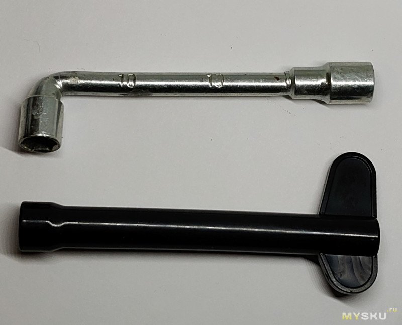 Есть у меня на 10 ключ (для снятия противовеса на СМА покупал специально), но он без длинного сквозного отверстия для шпильки: