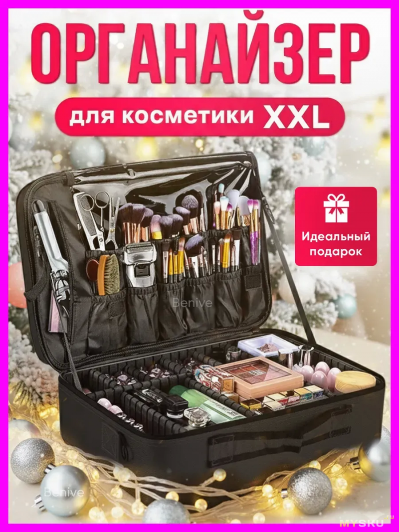 Нужен был кейс-органайзер, где планировал сложить все свои часто используемые приборы и электронику. Среди обязательных требований — твёрдый несминаемый каркас, жёсткие регулируемые перегородки, карманы для проводов, ручка для переноски опционально (если бы её не было, то пришил бы сам). И, кажется, я нашёл, что мне нужно, ступив на территорию женских товаров, именуемых косметичками.