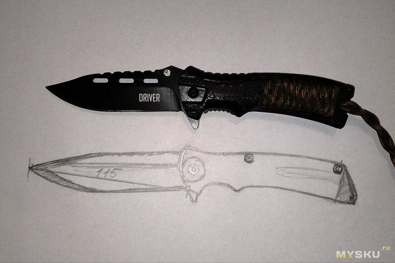 Длина лезвия 115мм это было бы серьезно. И утопленные шайбы не 9, а 16мм, и болты побольше с одинаковым отверстием, и рукоять нормальная без паракорда
