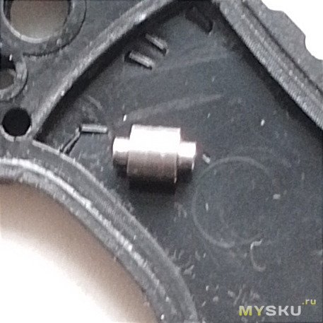 Когда я разобрал нож и поднес к окну на свет, то выпала пластиковая шайба куда-то в батарею. Я еë не нашел. Поэтому вставил одну металлическую шайбу, она неровной толщины, поэтому перекосила кончик клинка к одному лайнеру. Повезло что попалась подходящего размера.