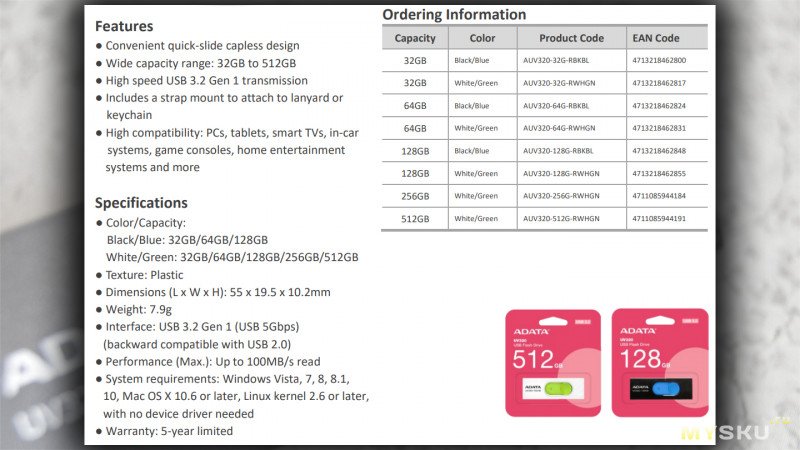 Обзор флешки ADATA UV320 объемом 64 ГБ