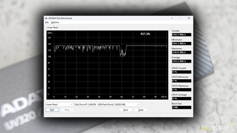 Что касается быстродействия, то флешка показала себя «честным» середнячком. Стабильные 40-42 МБ/с на запись по всему объему памяти — это хороший результат для бюджетного сегмента, где многие конкуренты страдают от падения скорости до совсем уж смешных цифр. На чтение скорость здесь тоже высокая (134 МБ/с), что позволяет комфортно просматривать «тяжелый» медиаконтент прямо с накопителя или быстро устанавливать программное обеспечение.