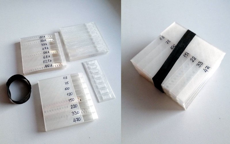 Что касается резисторов, то как и планировал, напечатал себе 6 контейнеров по 12 ячеек и сложил их все туда. А вот транзисторам «переехать» не удалось, они так и продолжили лежать в прежних контейнерах на 30 ячеек: