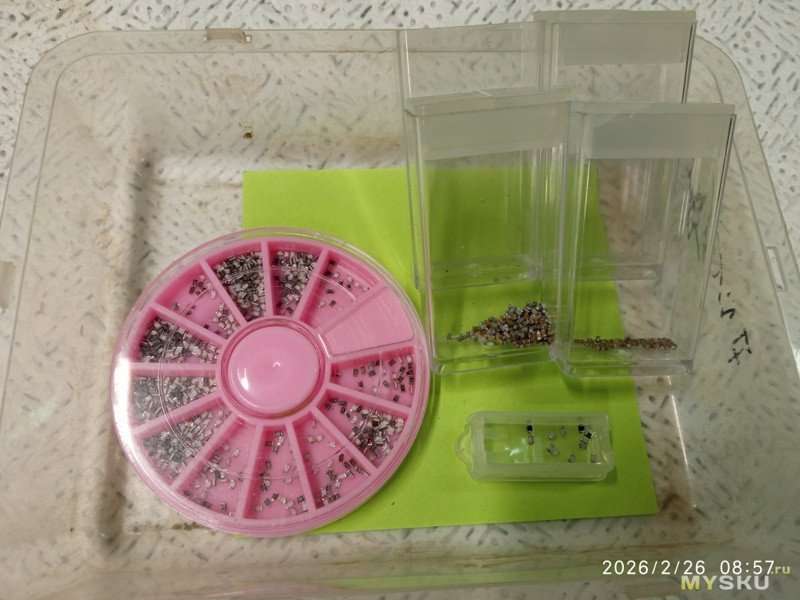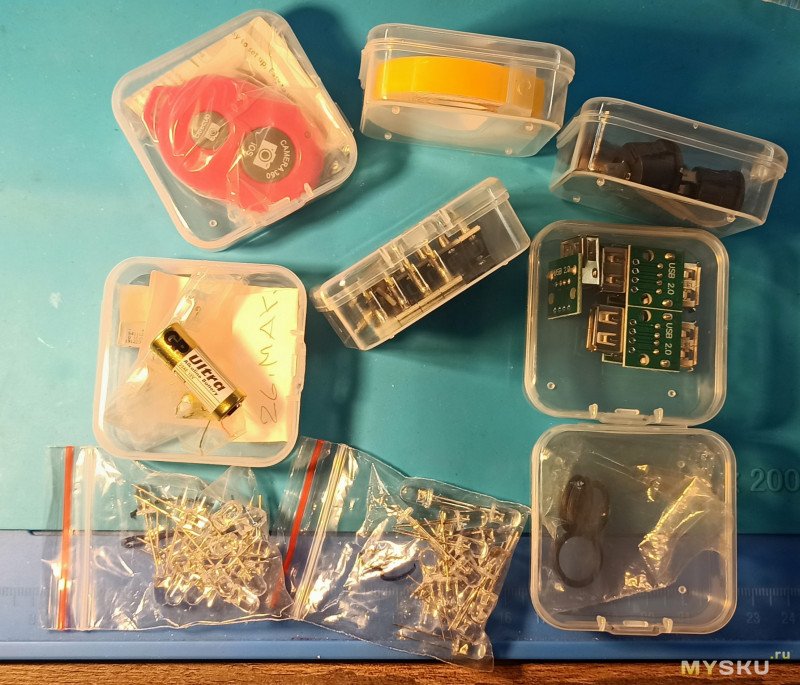 В коробочки отлично и компоненты с ногами влезают и смд ленточки. У меня пока хаотично всё, без нормальной сортировки: