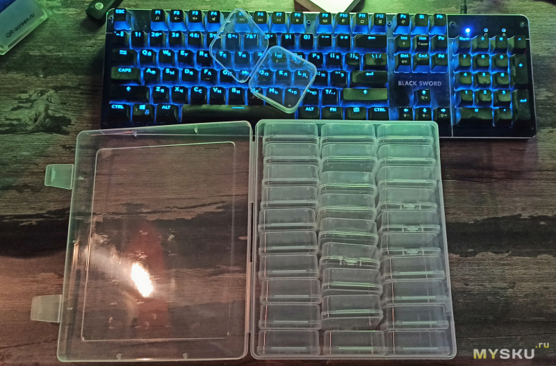 Внутренние ячейки имеют размер 13(Ш)х27(Г)х50.6(В) миллиметров, чуть сужаются к низу и снабжены пластиковой крышкой, которую можно вытащить с небольшим усилием, достаточным для того, чтобы крышка не выпадала сама: