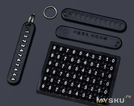 Заказал На Озоне, пришло быстро. Упаковано отлично. В двух небольших пакетиках: в одном сам брелок с карабином и отверткой, в другой – планка под номер телефона, с цифрами