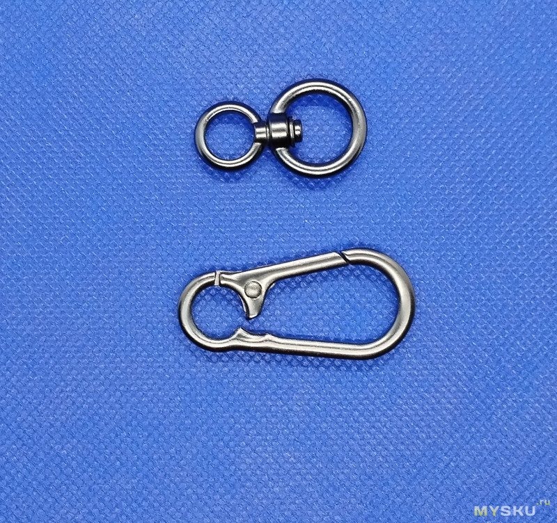 Два кольца тоже могут быть независимы от карабина. Кстати тоже удобно, их можно комбинировать с подковой с винтом. И опять-таки для складных ножей.