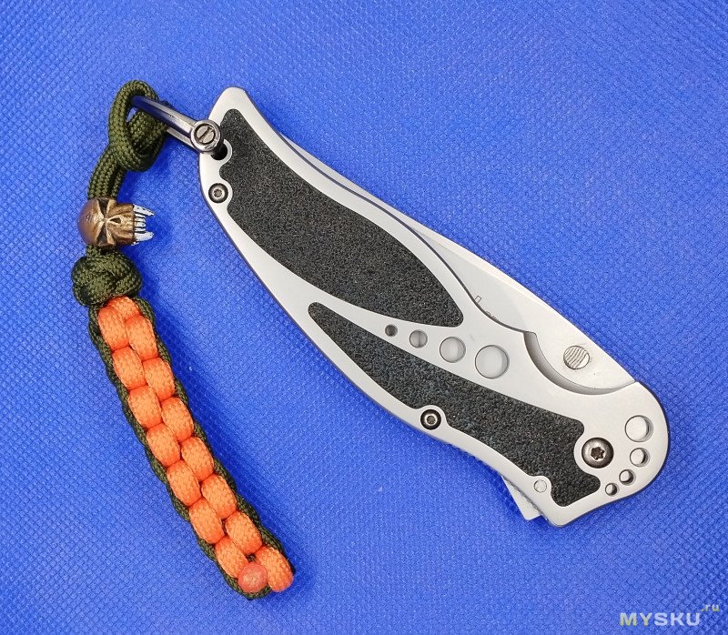 Так как это конструкция разборная, то можно самому решить, как будет выглядеть темляк: паракорд, кожа или другой материал. Также можно регулировать и линейные размеры темляка и петли.