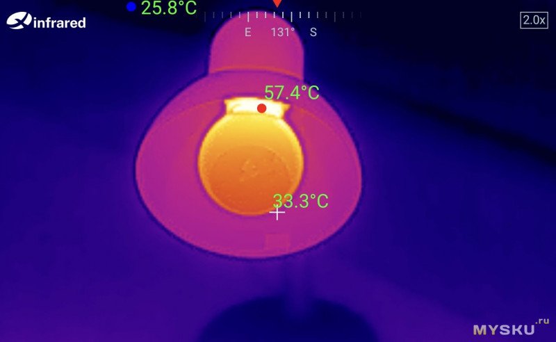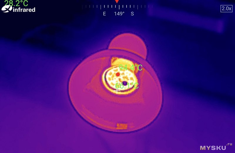 Яркость ожидаемо меньше. Думал Ra будет выше, пульсаций нет, световая температура тоже теплей.Нагрев после 20 минут работы (белая без колпака):