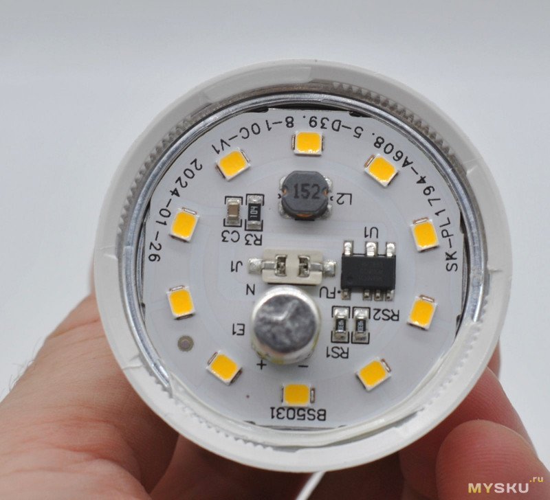 Видим: 10 светодиодов, электролит 3 мкФ 400 В и драйвер BP2863 (импульсный). Если в нем уменьшить RS2 лампочка станет «вечной». Рецептов таких переделок полно в сети.Тесты