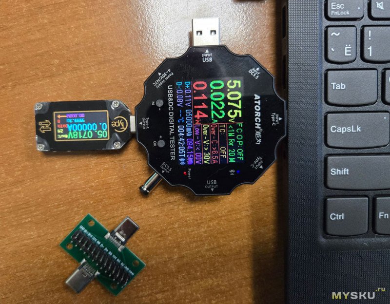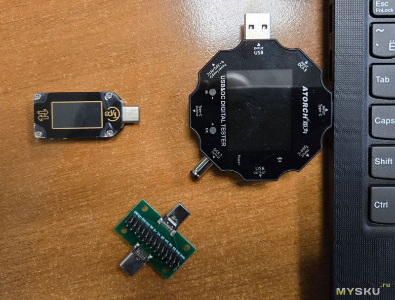А с другой стороны — вот есть данный адаптер, и он работает в порту Type-C, значит, сам всё подтягивает, что ему нужно. А вот с ноутбучной зарядкой не завёлся. Могу проверить с другой, благо их у меня много разных.