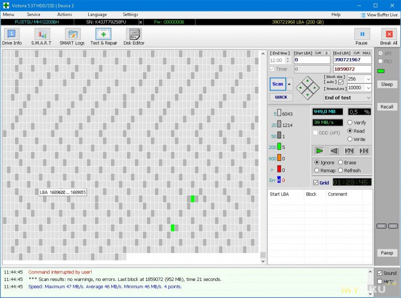 Следующий испытуемый — ноутбучный HDD Fujitsu: