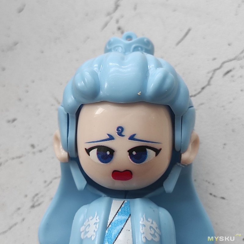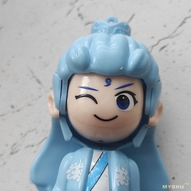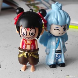 У обоих фигурок вверху есть петельки для подвешивания как брелок. В общем прикольные фигурки. Минус то, что у Нэчжа уши могут выпасть, желательно приклеить. И Нэчжа не стоит на своих маленьких ногах, его нужно опирать на что-то или на Ао Бина, как на главном фото.