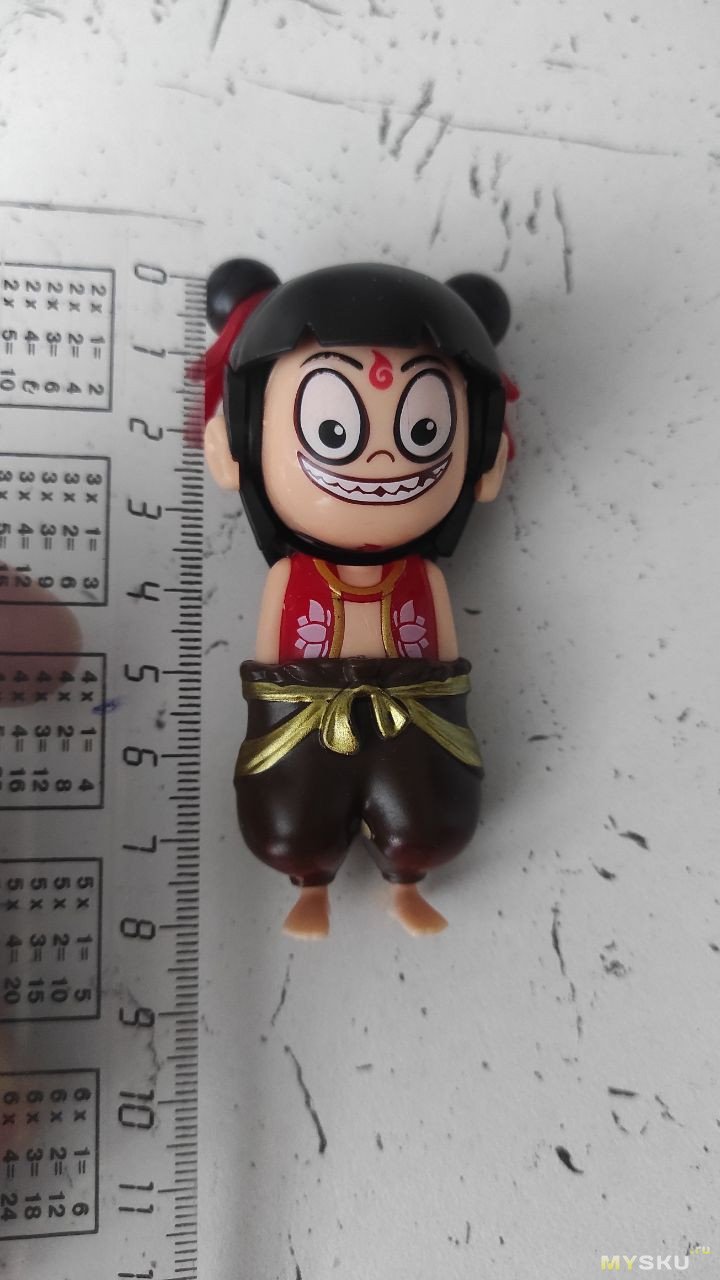 Размер фигурки около 9см. Нэчжа стоит, засунув руки в карманы и в штаны целиком.