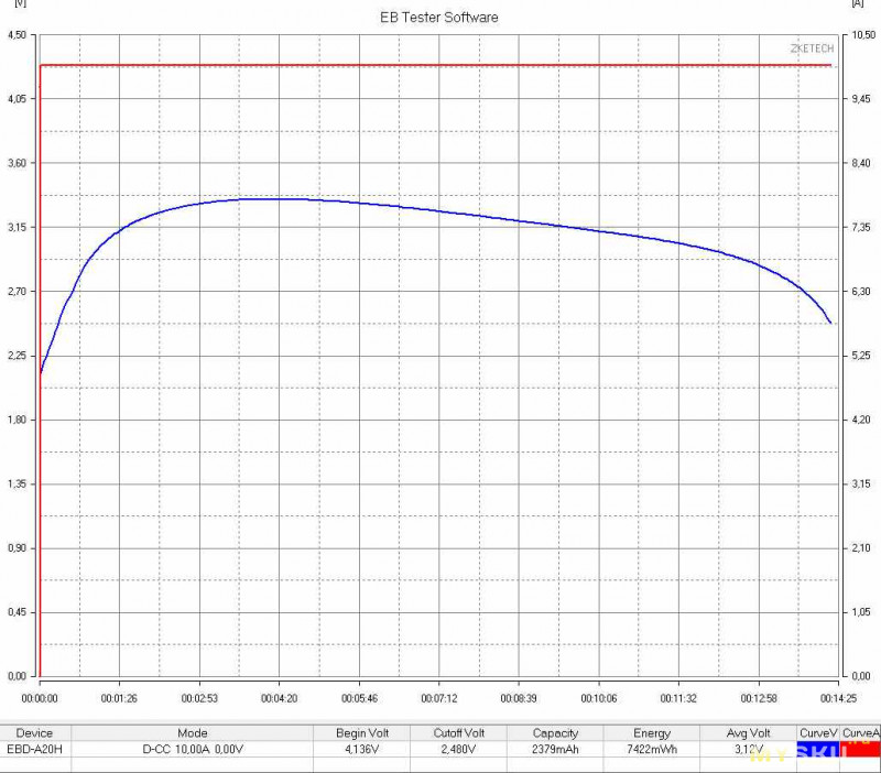 Аккумулятор 18650 при -20 град. Тест током 10А