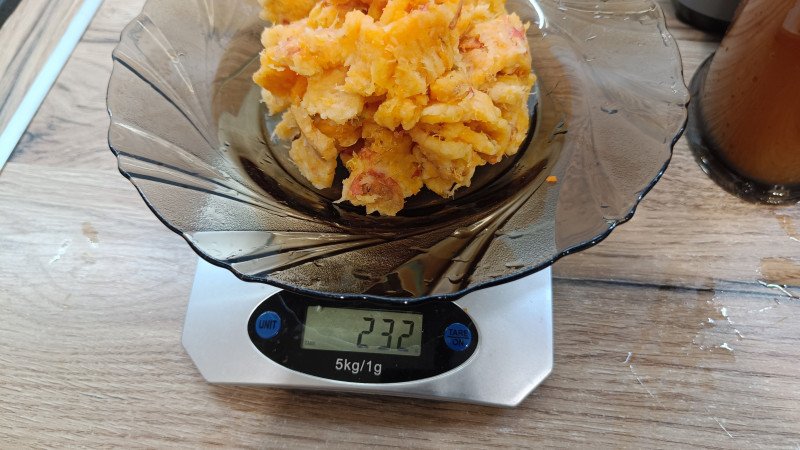 Взвешиваем жмых после отжима. 581 г, тарелку не учитываем.
