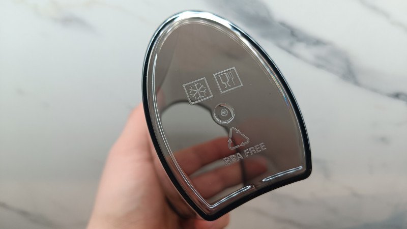 Корпус соковыжималки покрыт алюминиевой накладкой с шершавой структурой. Это позволяет удобно держать во время переноски. На корпусе размещается клавиша на 3 положения. Центральное для состояния покоя. Запуск в работу при нажатии вверх. При этом удерживать клавишу постоянно не потребуется. При нажатии клавиши вниз, включится реверс, но придется удерживать ее постоянно. Клавиша подписана. Шнек из металлического шестигранника, а в возвышающейся части размещается скрытая кнопка блокировки. Соковыжималка запустится лишь в случае ее нажатия бункером.
