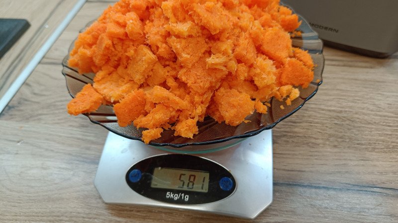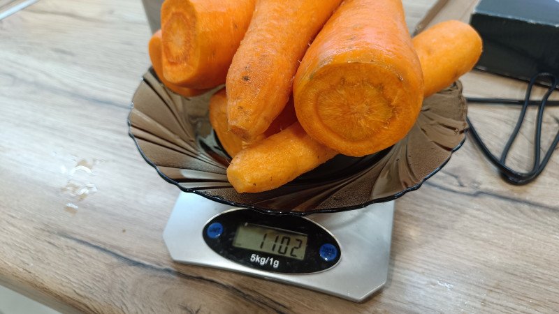Предлагаю начать с моркови. В чашке 1,1 кг моркови, без учета веса тарелки.